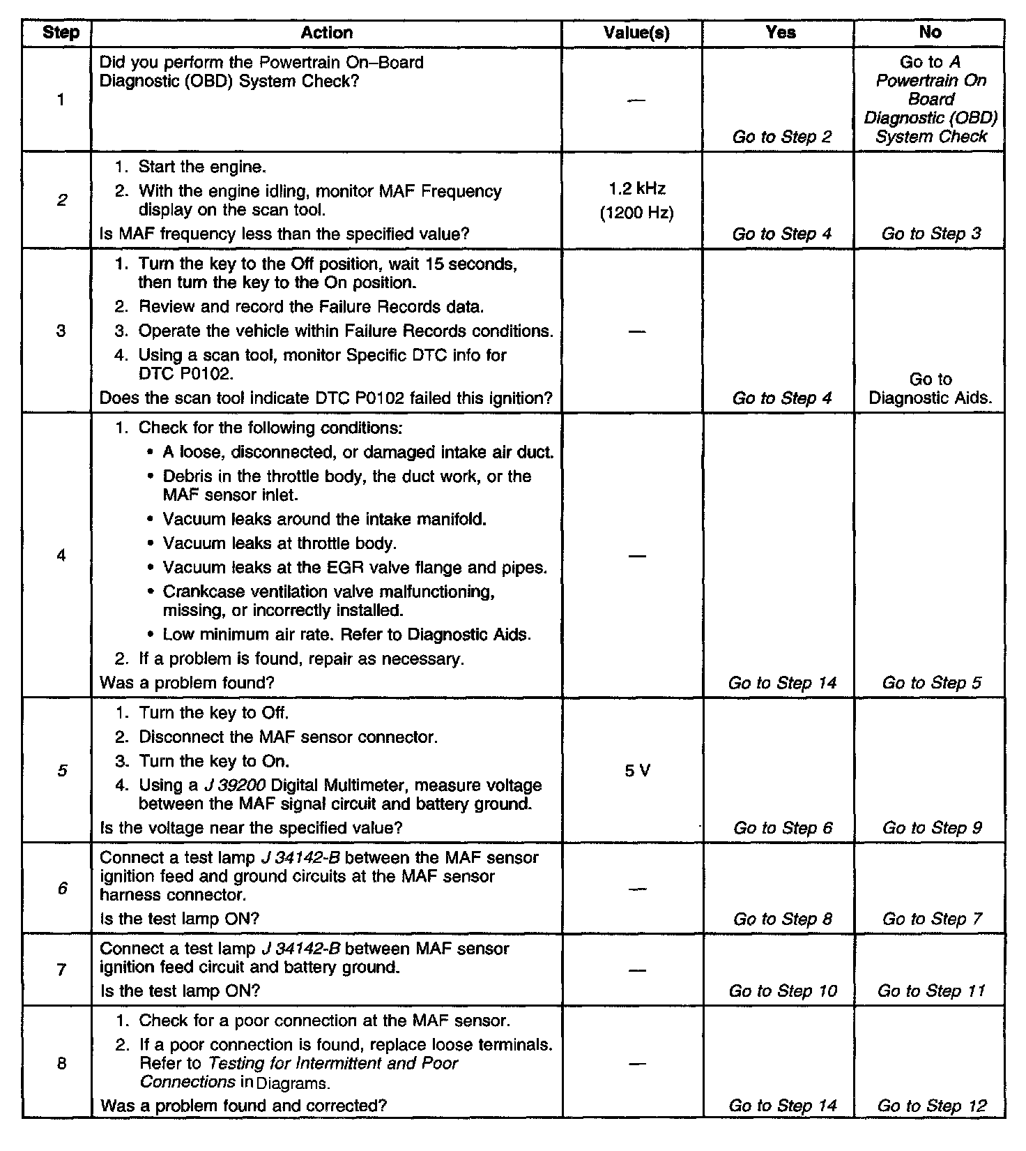 ^ The Mass Air Flow (MAF) signal frequency is less than 1200 Hertz.
