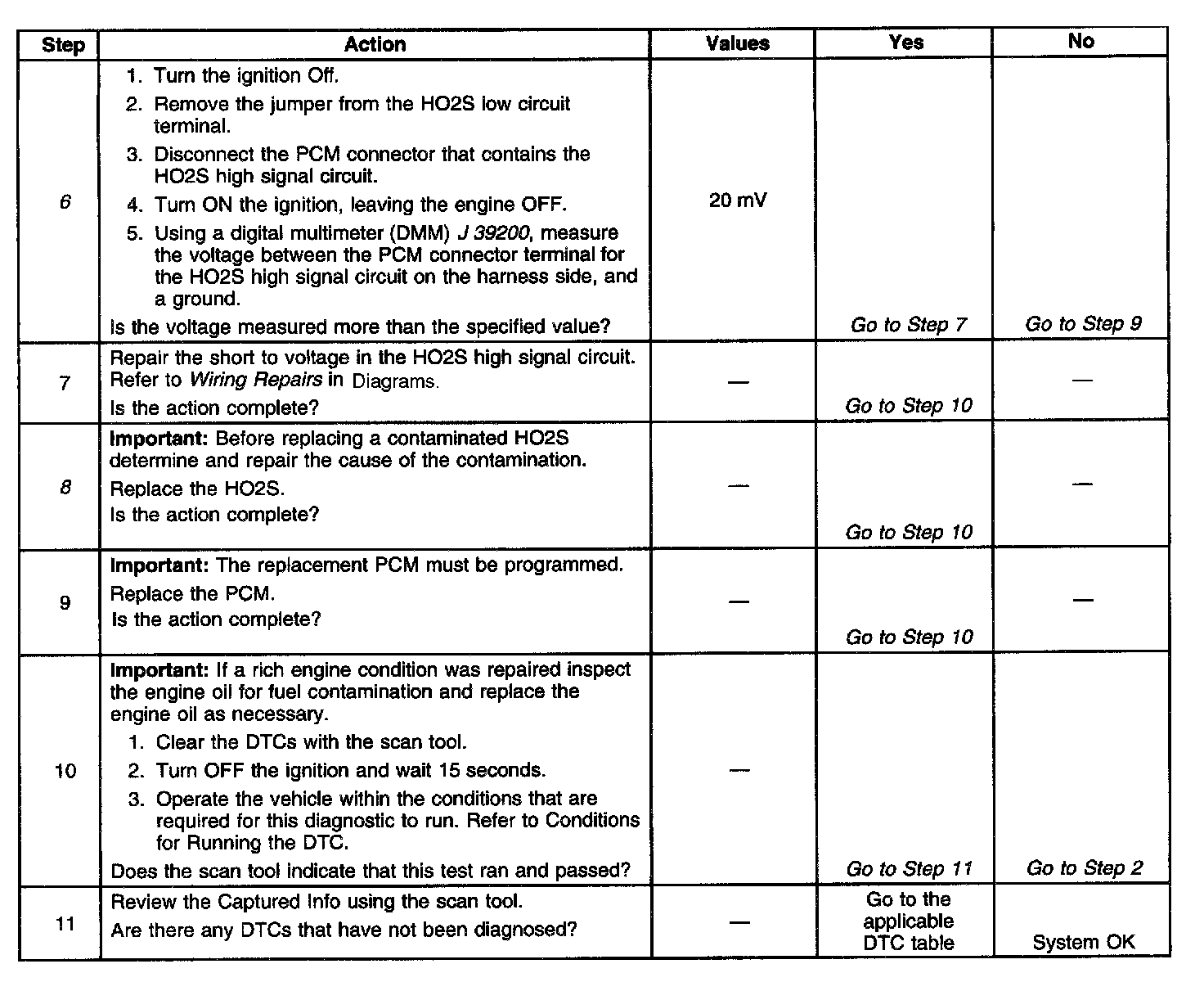 6. This step checks the HO2S high signal circuit for a short to voltage.