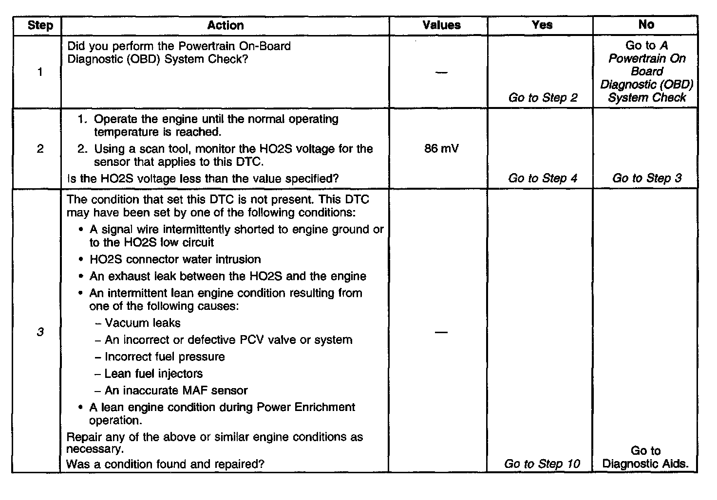 3. In order to determine if the engine is lean during power enrichment, operate the vehicle under higher throttle, or higher acceleration, conditions, Monitor the scan tool HO2S voltage and the power enrichment parameter at the higher acceleration. A lean condition will cause the HO2S voltage to be less than 598 mV during power enrichment.
