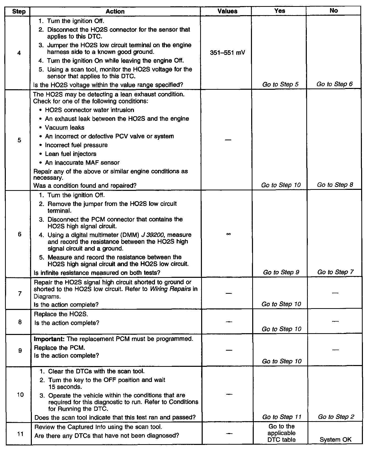 ^ Incorrect fuel pressure - A condition that causes a lean exhaust can cause DTC P0137 to set. The system will go lean if the fuel pressure is too low. The PCM can compensate for some decrease. However, if fuel pressure falls too low, DTC P0137 may set. Refer to Fuel System Pressure Test. Fuel System Pressure Test