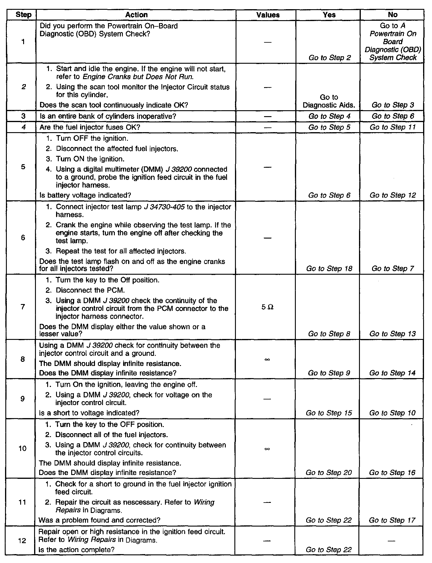 ^ An internally shorted or excessively low resistance fuel injector