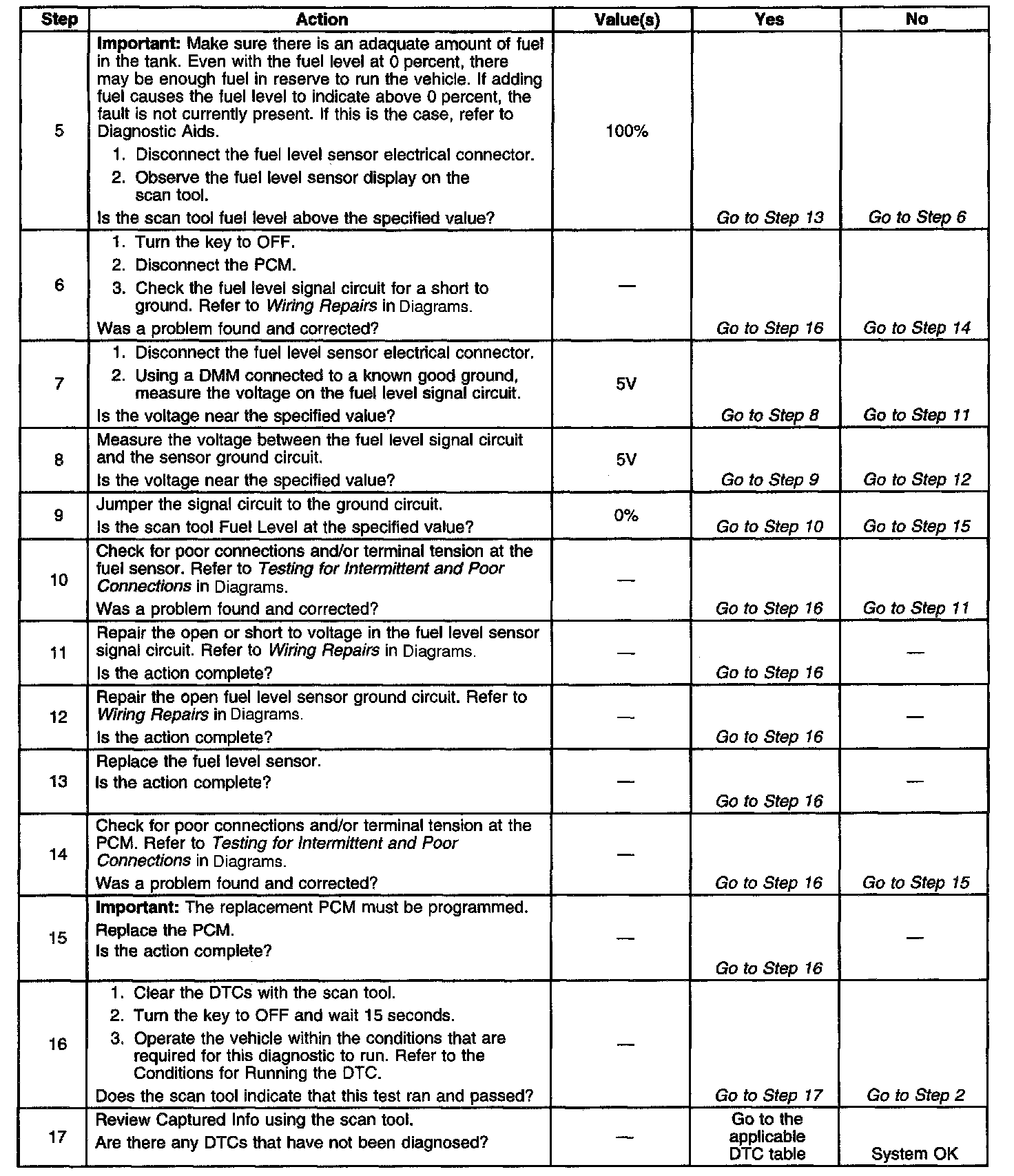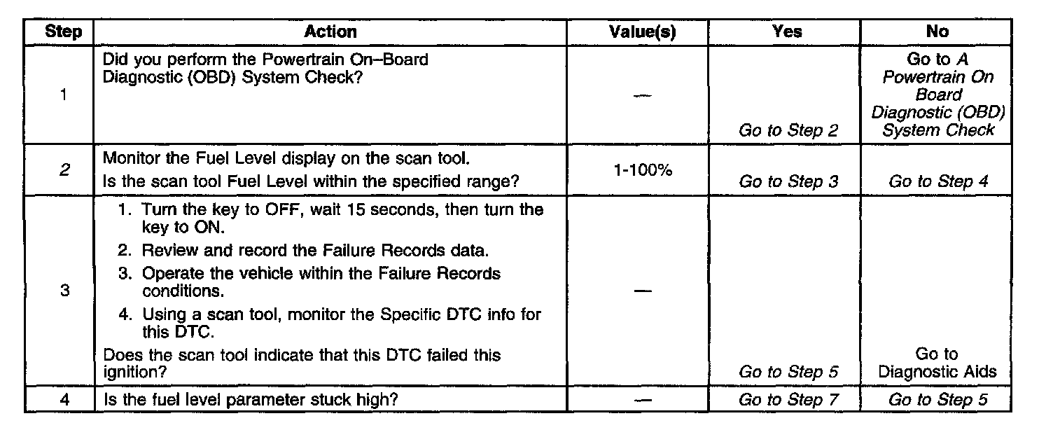 If the fuel level sensor is suspected of being stuck or inaccurate, refer to Fuel Level Sensor Diagnosis. Component Tests and General Diagnostics