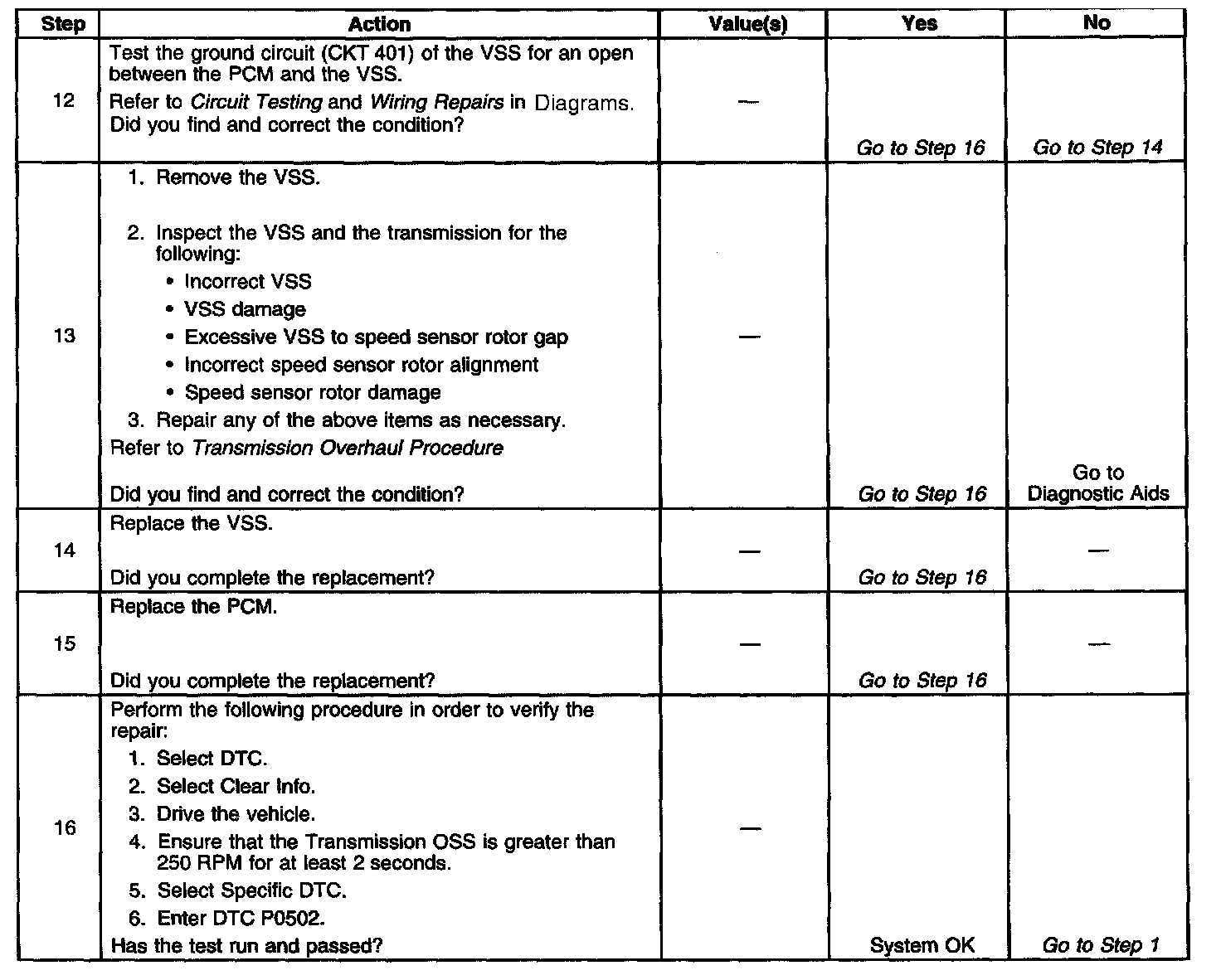 3. This step test the ability of the VSS to produce an AC current. This step also verifies the integrity of the wiring to the PCM.