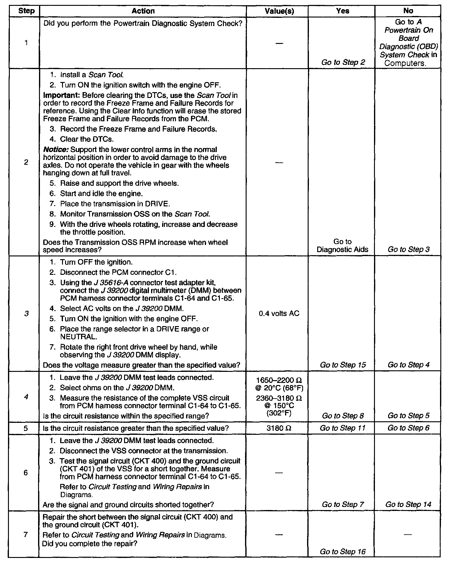 3. This step test the ability of the VSS to produce an AC current. This step also verifies the integrity of the wiring to the PCM.