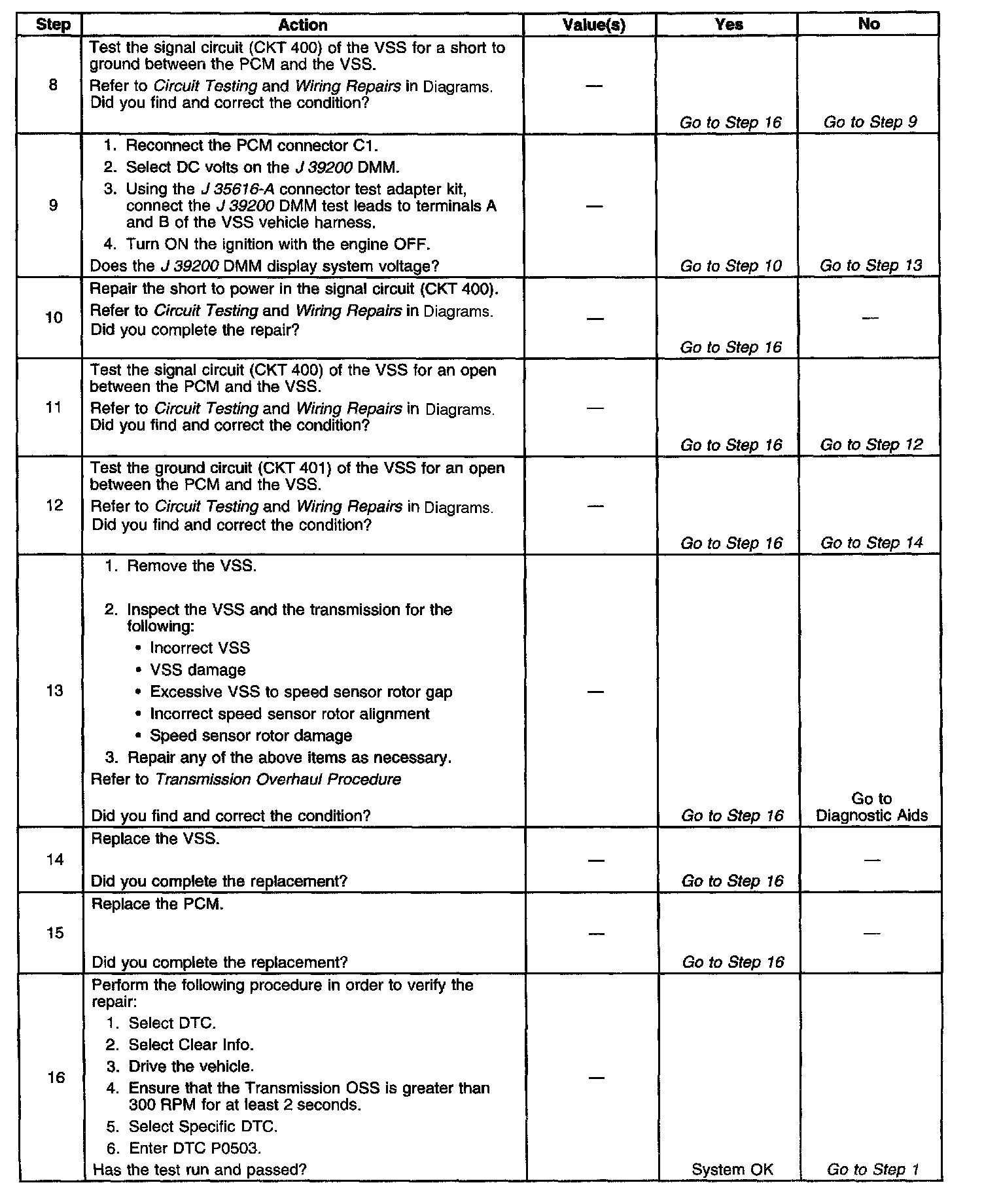 ^ The PCM stores DTC P0503 in PCM history during the second consecutive trip in which the Conditions for Setting the DTC are met.