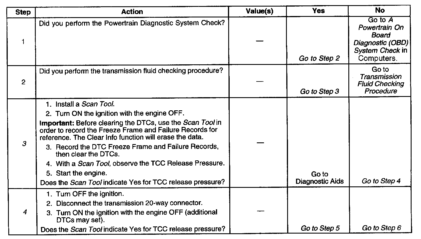 ^ An open condition in the TCC release circuit or switch would set DTC P1887.Open circuits are not diagnosed in DTC P0742.
