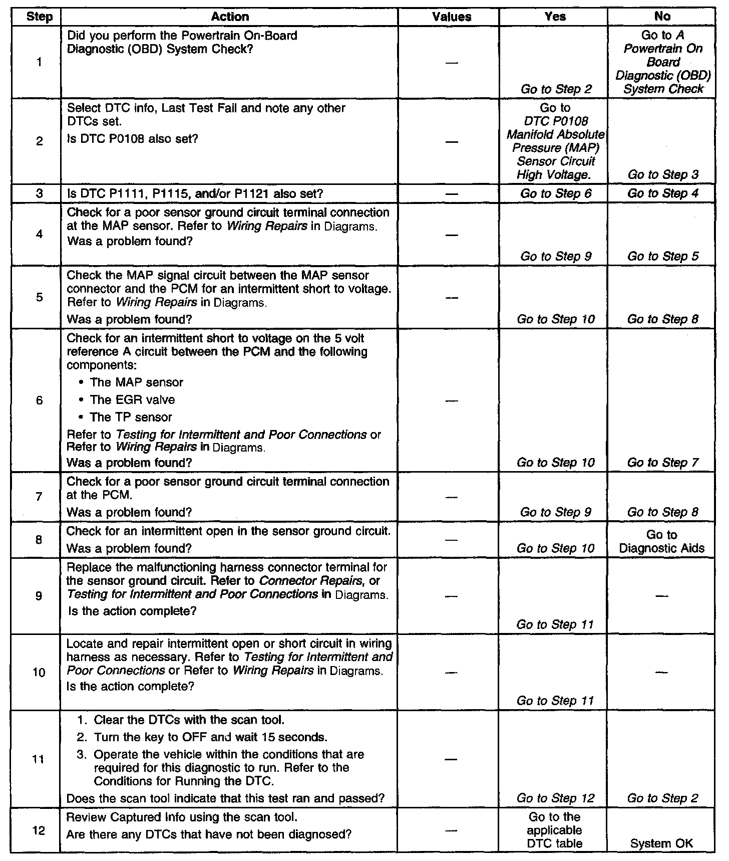 ^ Poor connection at PCM or MAP sensor - Inspect harness connectors for backed out terminals, improper mating, broken locks, improperly formed or damaged terminals, and poor terminal to wire connection.