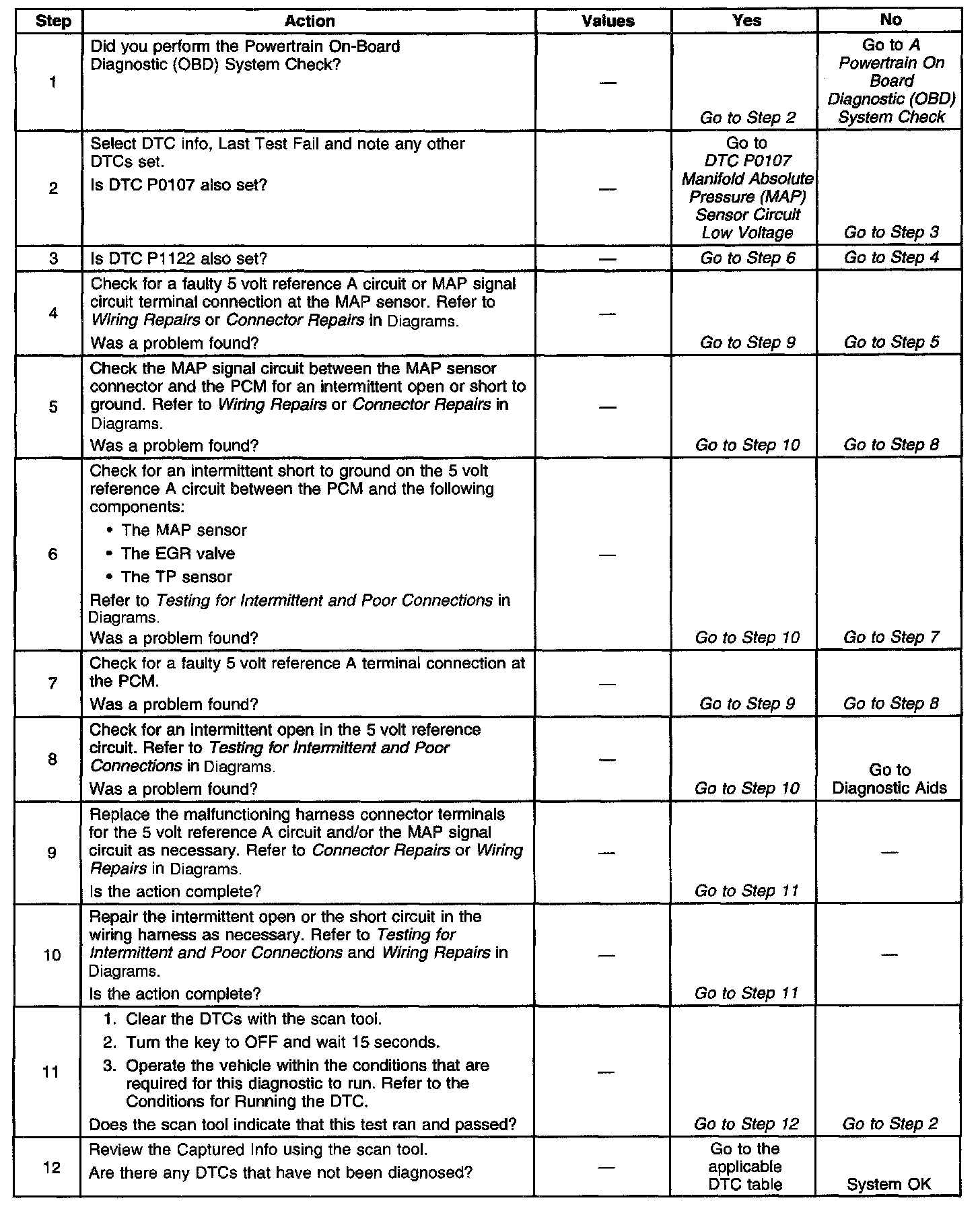 ^ A faulty connection at PCM or MAP sensor - Inspect PCM harness connectors for backed out terminals, improper mating, broken locks, improperly formed or damaged terminals, and poor terminal to wire connection.