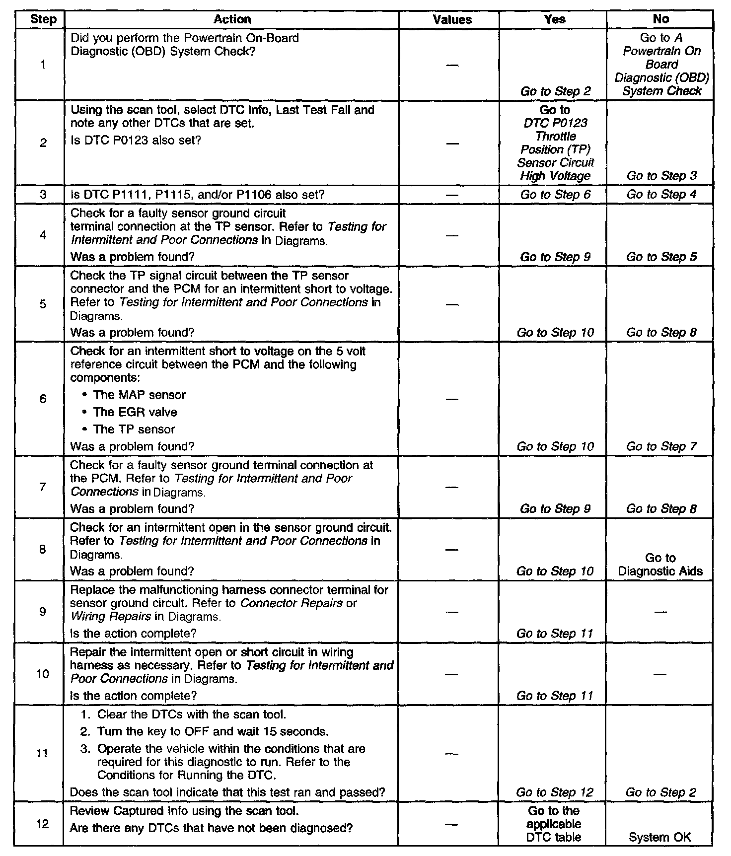 If the problem is intermittent, refer to Intermittent Conditions. Intermittent Conditions