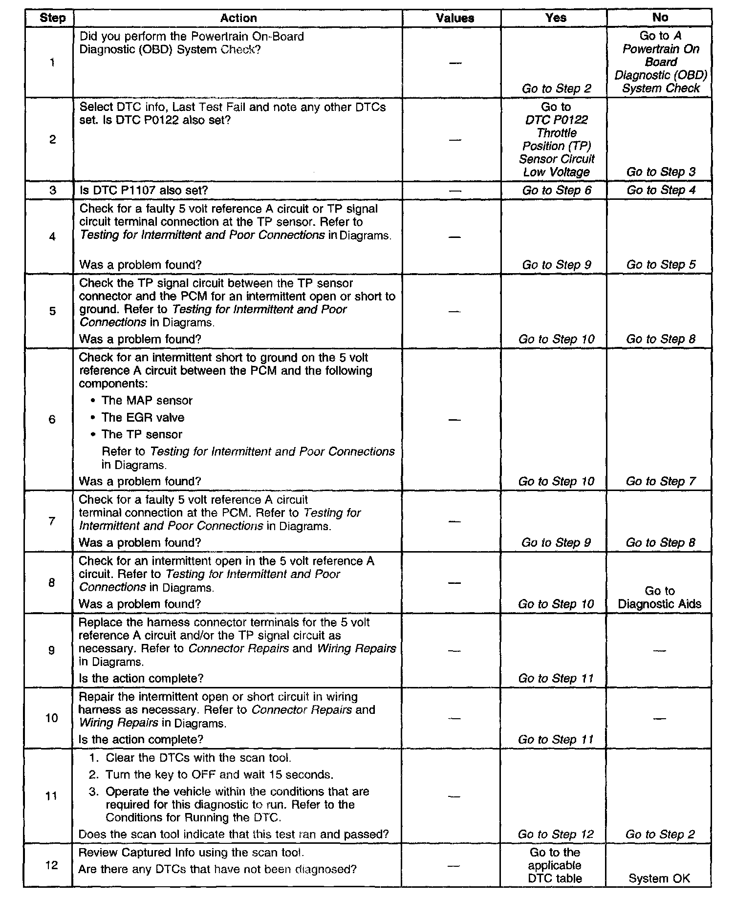 If the problem is intermittent, refer to Intermittent Conditions. Intermittent Conditions