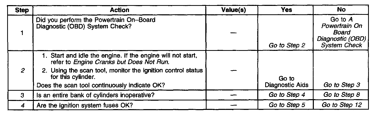 The numbers below refer to the step numbers on the diagnostic table.
