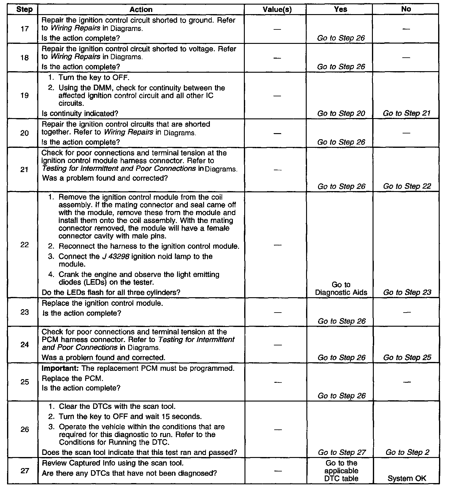 The PCM detects an incorrect voltage potential on the ignition control circuit.