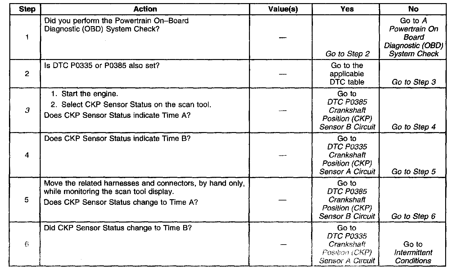 3. The CKP Sensor Status parameter should always indicate Angle. If Time A or Time B is displayed, a problem has been detected.