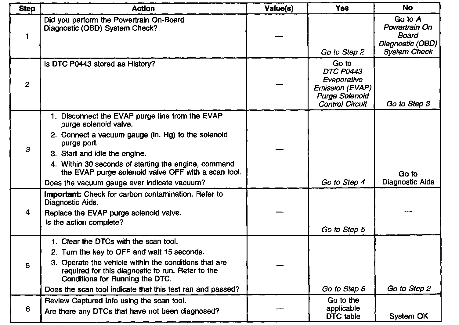 IMPORTANT: An accurate indication of fuel level is required for the PCM to properly Pass or Fail this DTC. Always diagnose fuel level sensor DTCs before performing this DTCs diagnostic table. Always check for fuel level sensor DTCs stored as History.