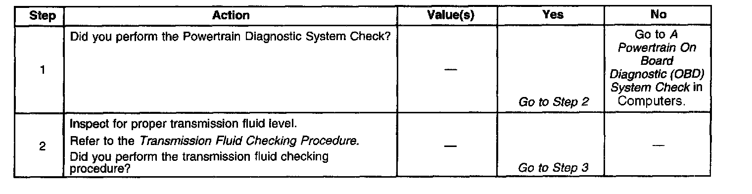^ If a transmission overhaul was performed, ensure that the transmission fluid is at the proper level. A low fluid condition may set this DTC.