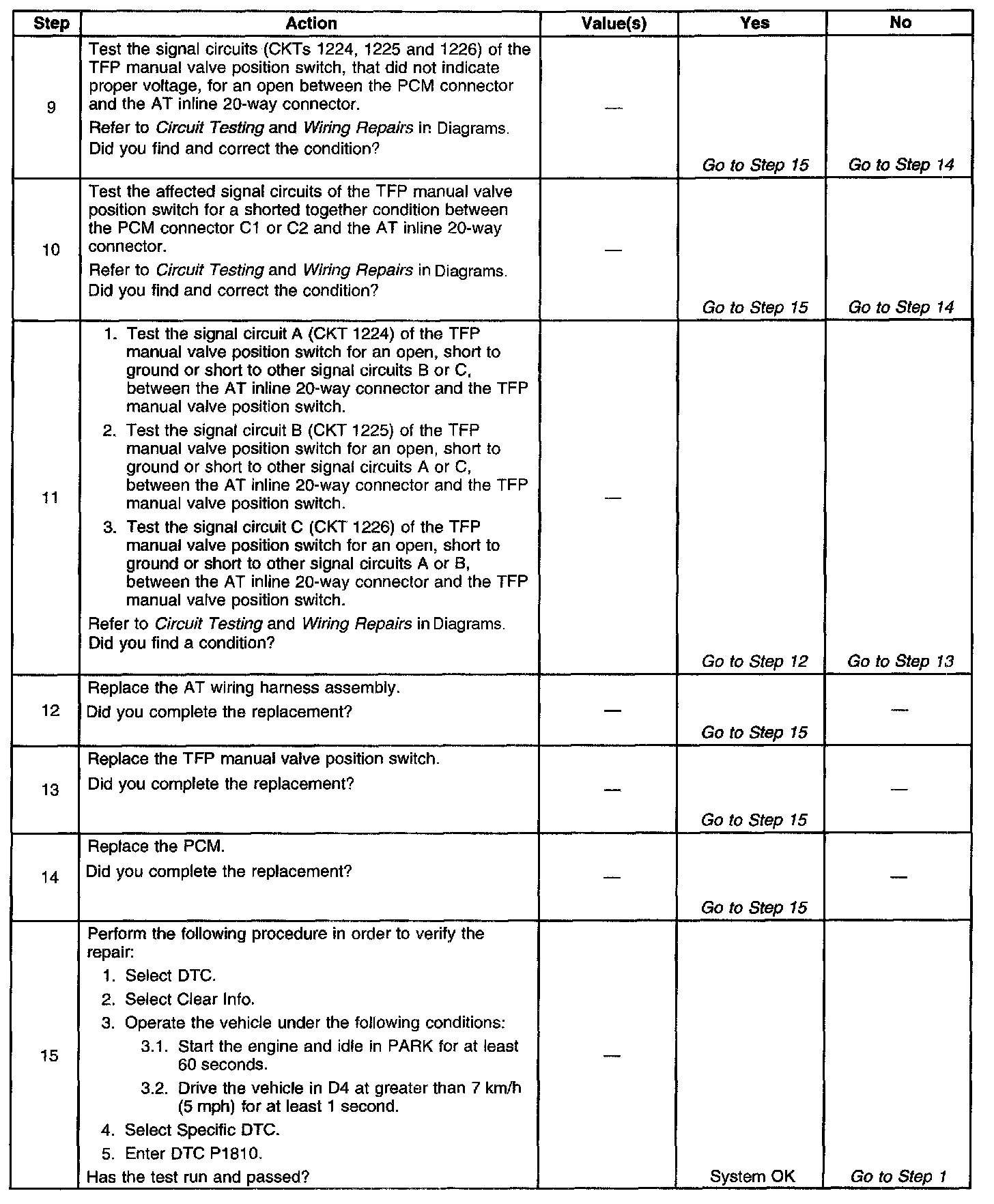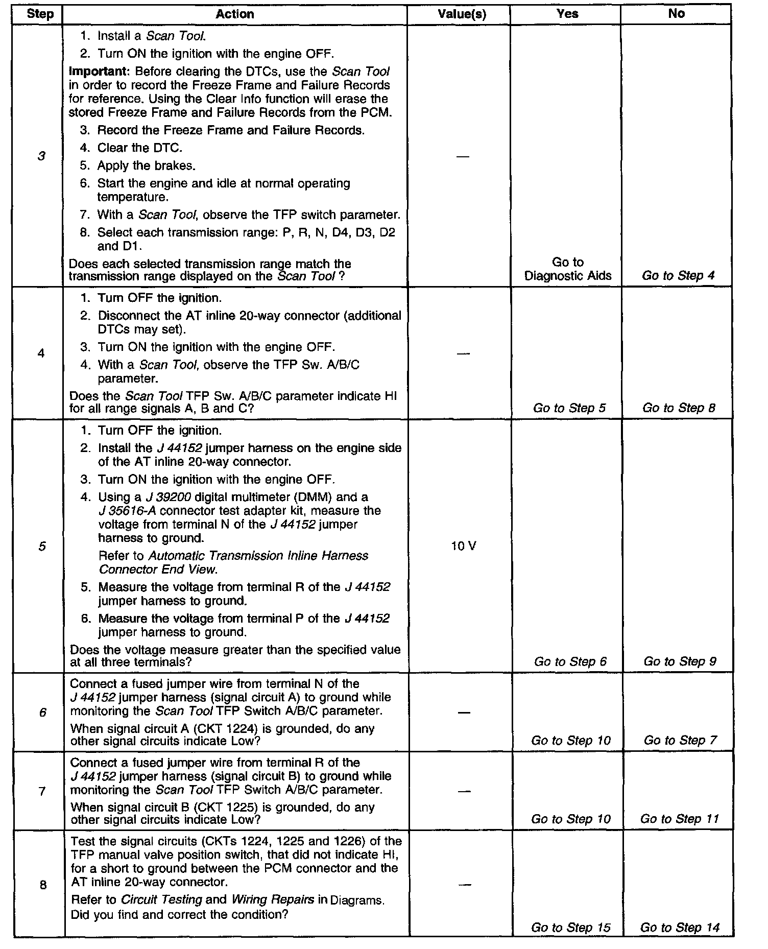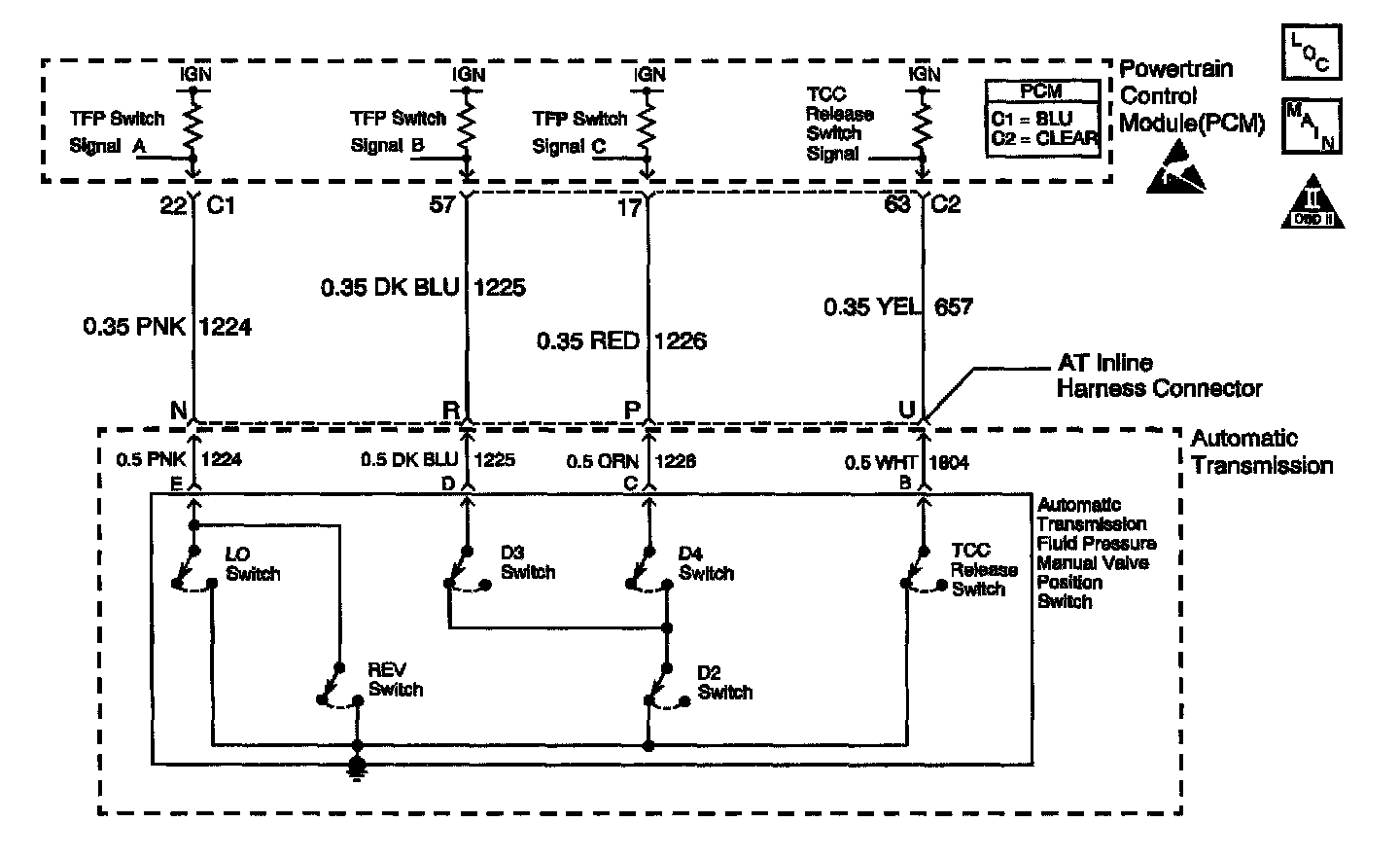 ^ Refer to the Transmission Fluid Pressure (TFP) Manual Valve Position Switch Logic table for the normal range signals and the invalid combinations.