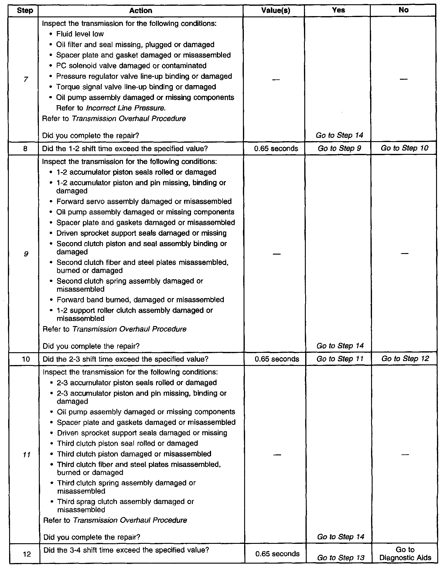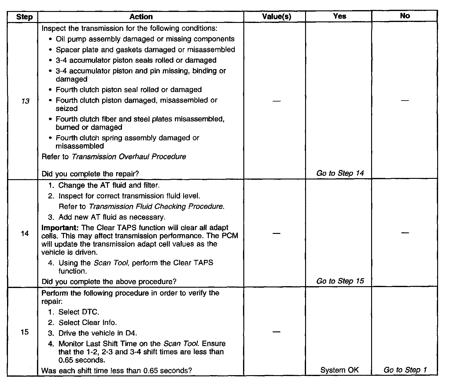 13. This step inspects or repairs components that may cause a maximum adapt and long 3-4 upshift.