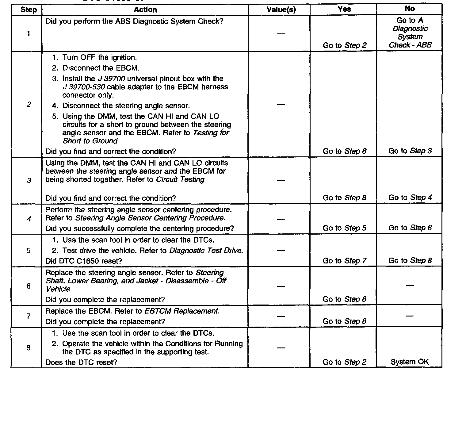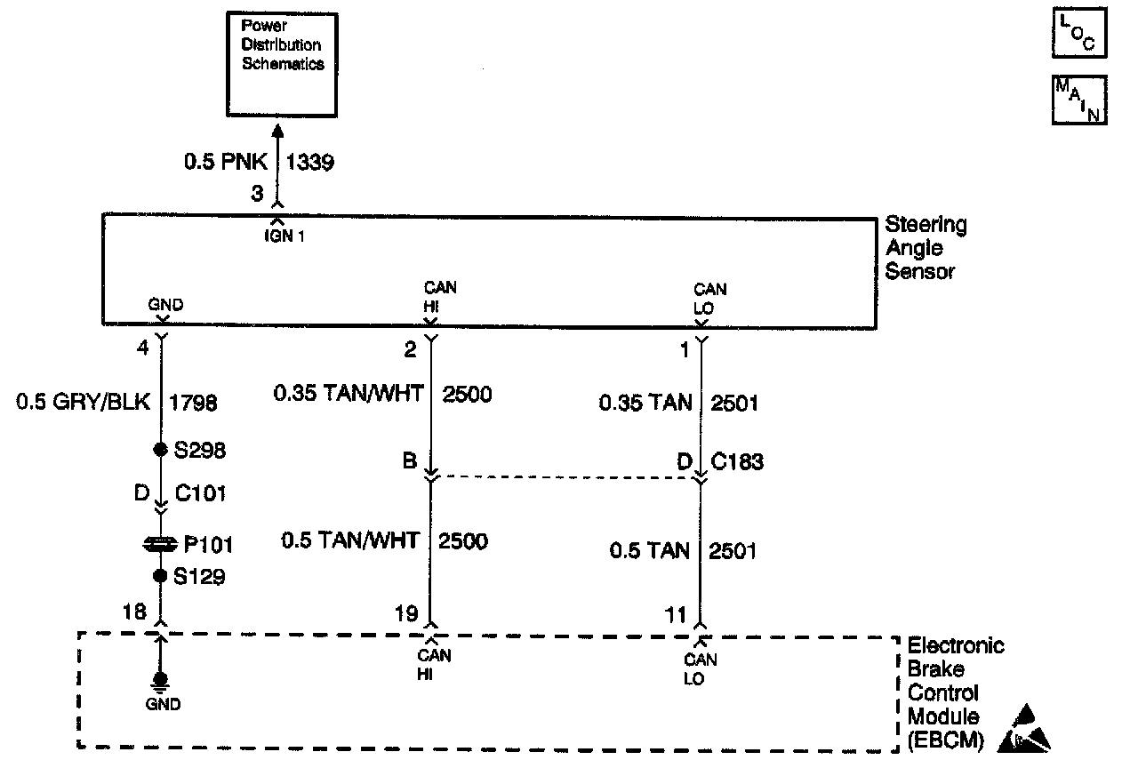 The Controller Area Network (CAN) serial data circuit is a high speed serial data bus used to communicate information between the steering angle sensor and the EBCM. When the ignition switch is turned to the ON position, the module and the steering angle sensor begin to transmit data between each other.