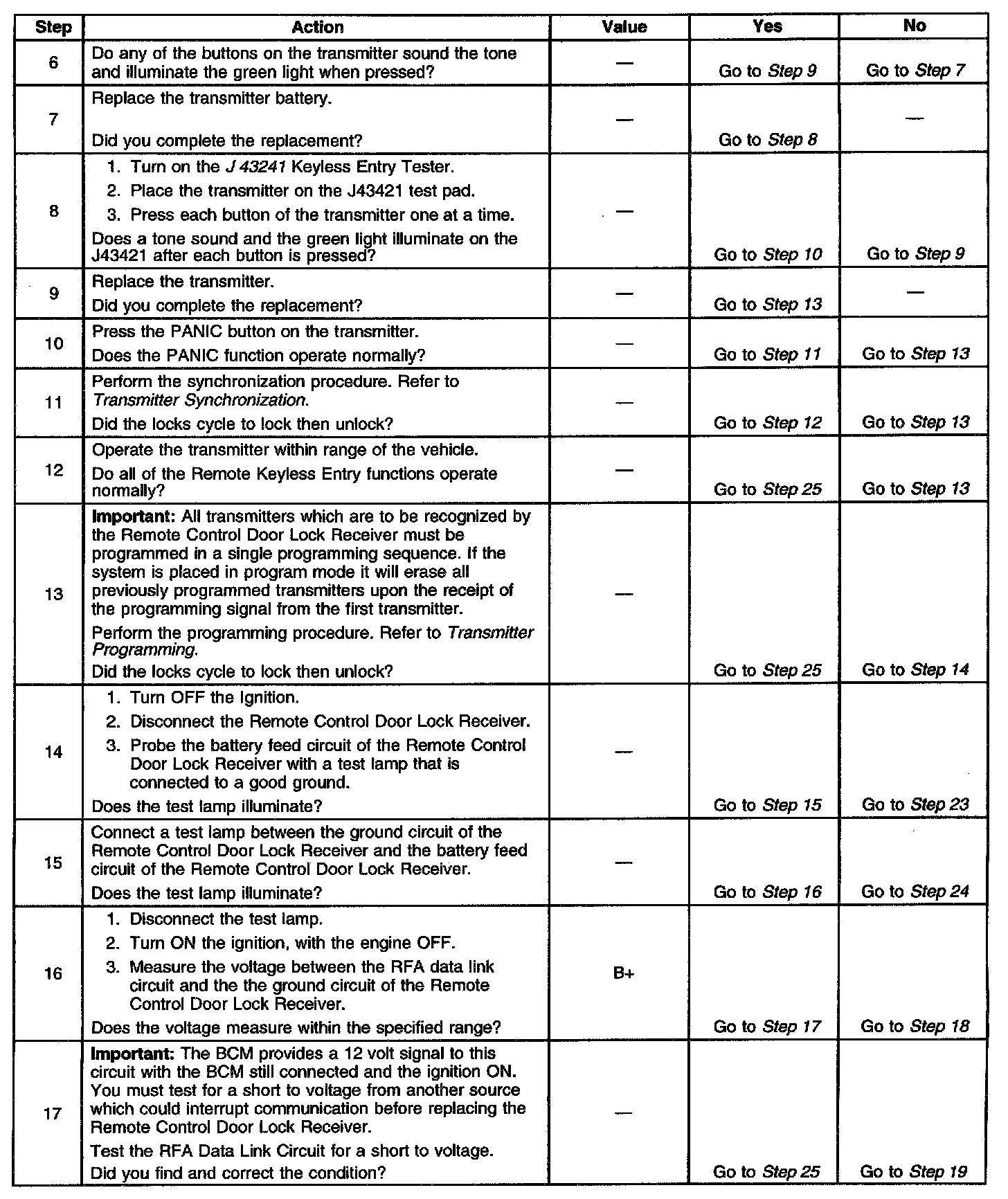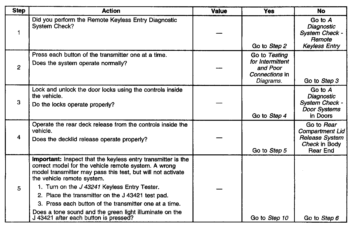 Keyless Entry System Inoperative