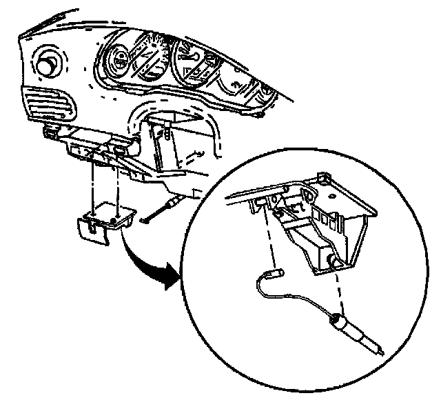 4. Remove the hood release handle from the instrument panel.