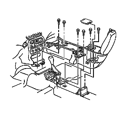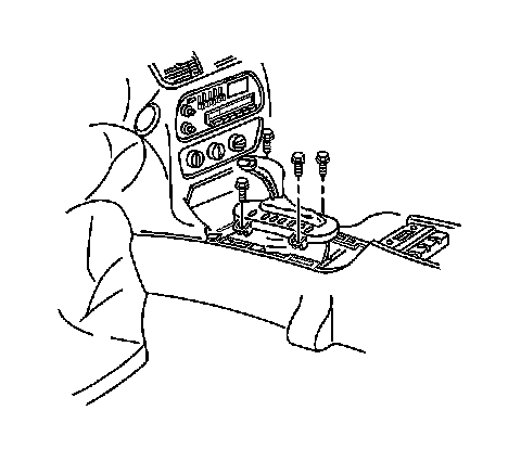 1. Remove the front floor console trim plate. Refer to Front Floor Console Trim Plate Replacement (Front Floor Console Trim Plate Replacement).