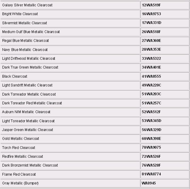 Paint Code Charts