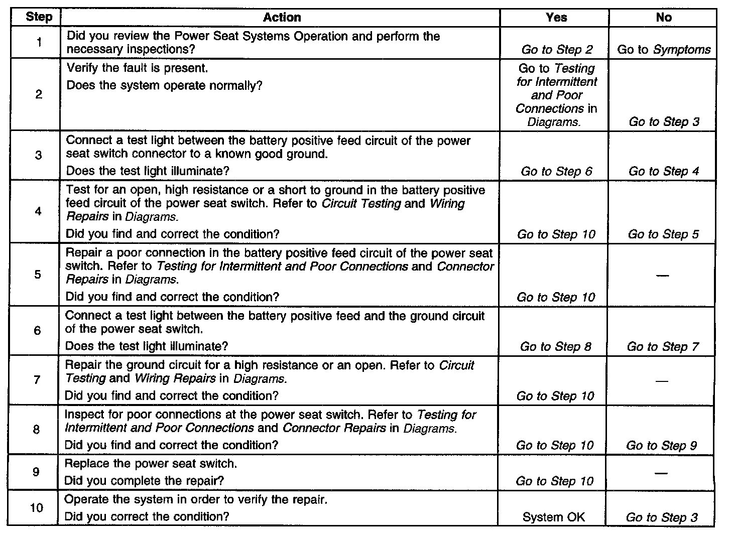 Power Seat Inoperative