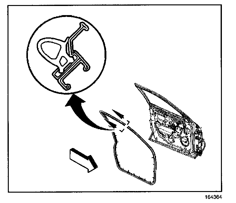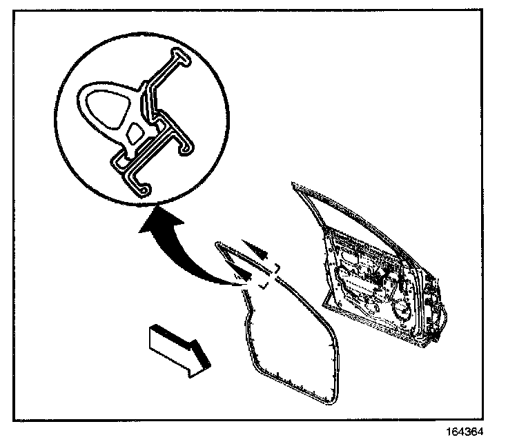 2. Apply pressure to the upper half of the front door weatherstrip into the track until fully seated.