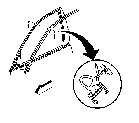Important: Inspect the plastic clip retainers for damage prior to reinstallation of the window weatherstrip retainer replacing any damaged plastic clip retainers.