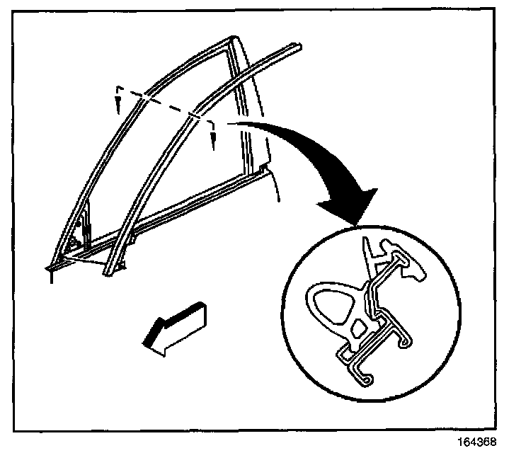 2. Remove the glass run channel in the area of the front door weatherstrip retainer.
