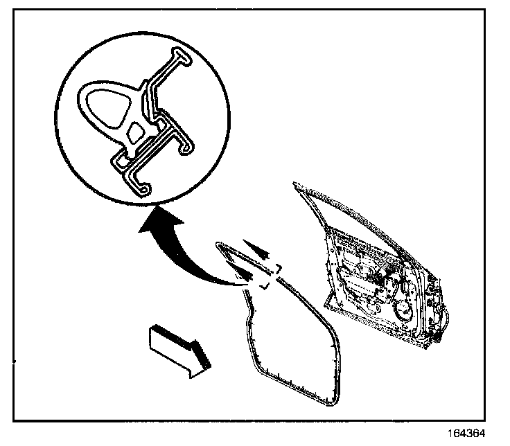 2. Apply pressure to the upper half of the rear door weatherstrip until the track until fully seated.