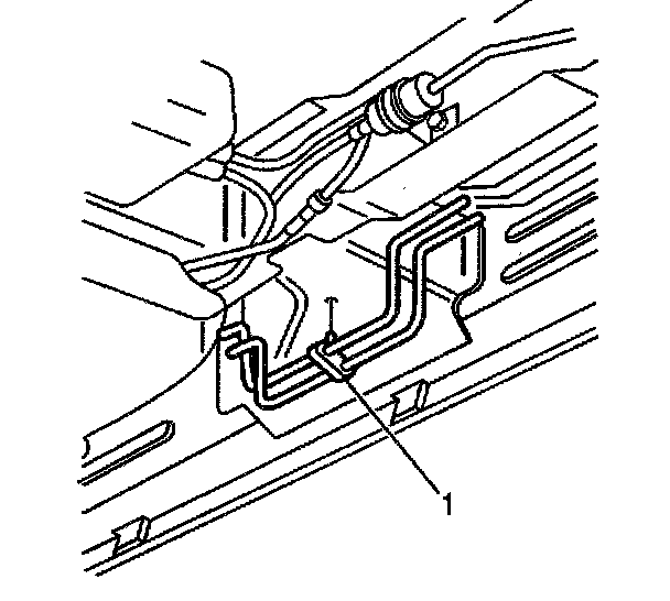 7. Remove the rear brake pipe clip (intermediate) (1).