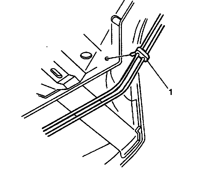 6. Remove the rear brake pipe clip (front) (1).