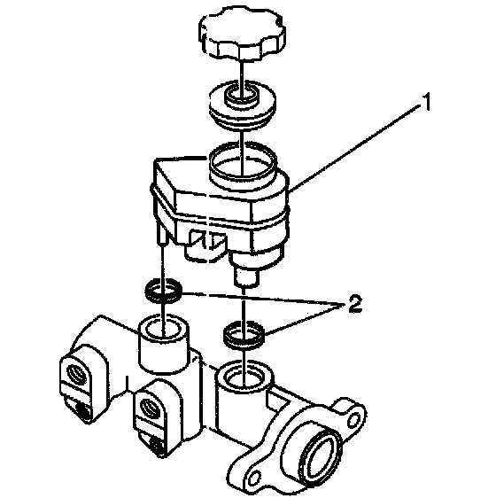 5. Remove the O-rings (2) from the grooves in the reservoir.