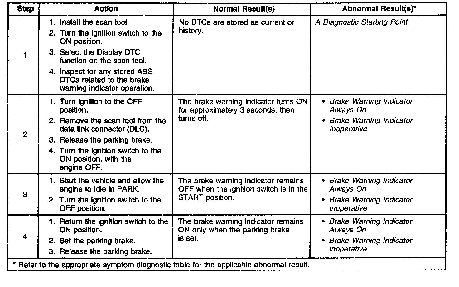 Brake Warning System Check