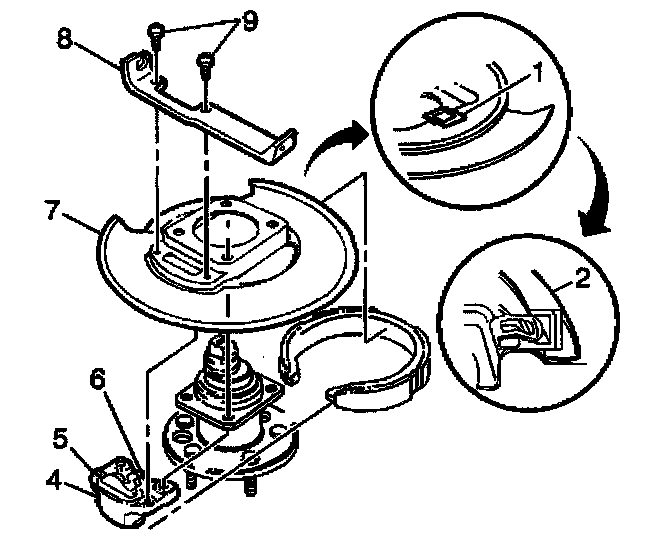 8. Remove the parking brake bracket (8) from the support plate (7).