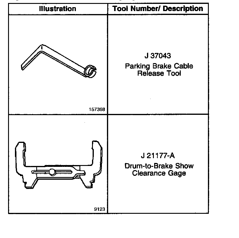 Parking Brake System: Tools and Equipment
