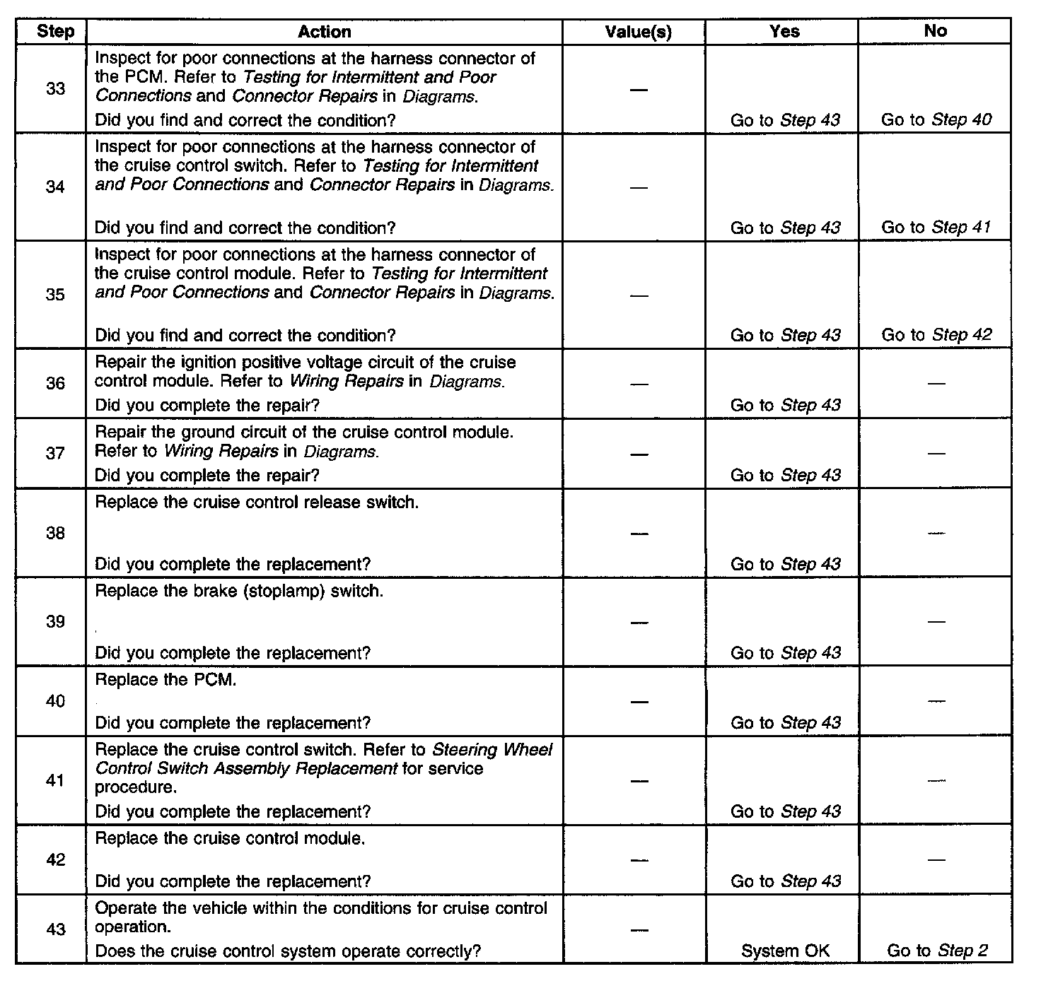 ^ Inspect for stored Diagnostic Trouble Codes (DTCs) in the PCM. Refer to Computers and Control Systems.