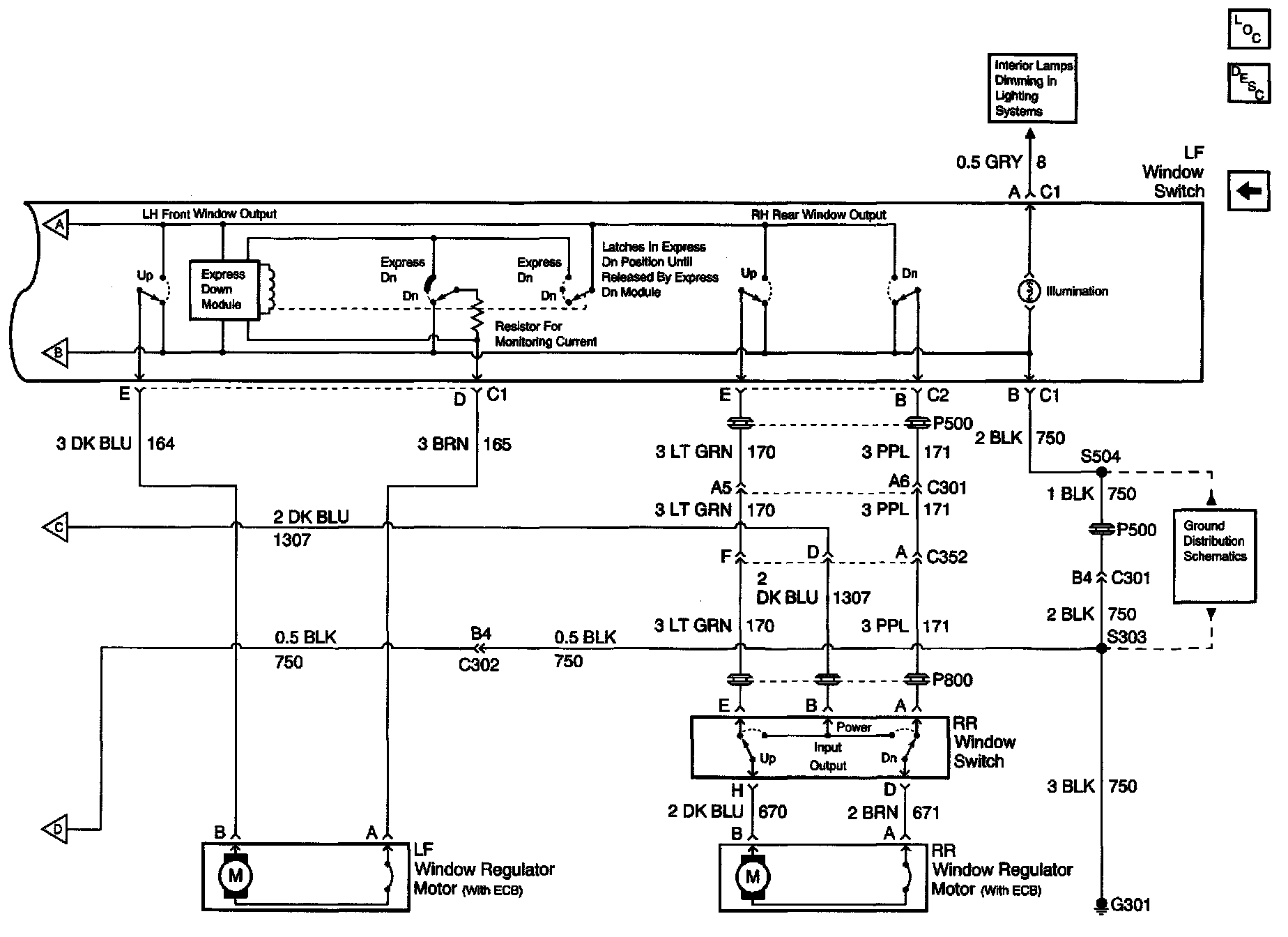 Power Window Schematics: Ground Feed And Actuators: