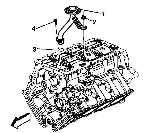 4. Remove and discard the oil pump pipe and screen O-ring (3).