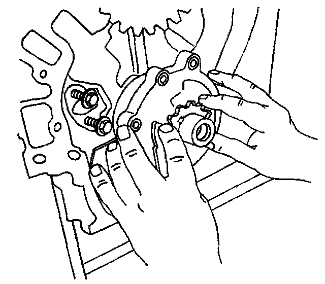 1. Align the crankshaft sprocket splines with the oil pump gerotor and install the sprocket in the oil pump.