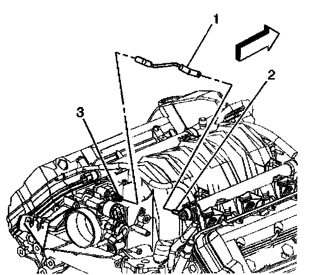 1. Disconnect the fuel pressure regulator vacuum tube (1) from the regulator (3) and the throttle body (2).