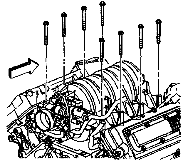 3. Remove the EGR valve outlet pipe bolts from the intake manifold and the water crossover.