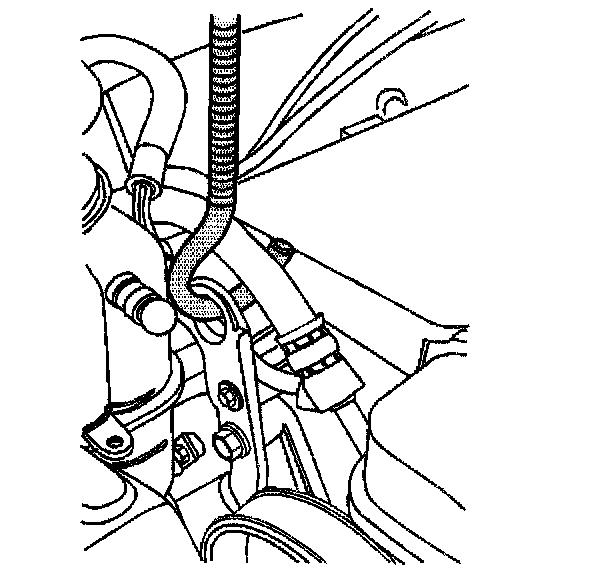 8. Remove the engine mount strut bracket. Refer to Engine Mount Strut Bracket Replacement (Upper Radiator Support) or Engine Mount Strut Bracket Replacement (Engine).