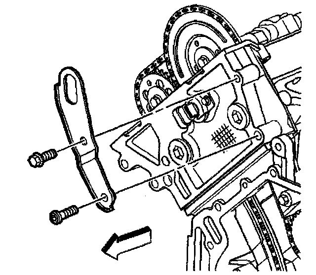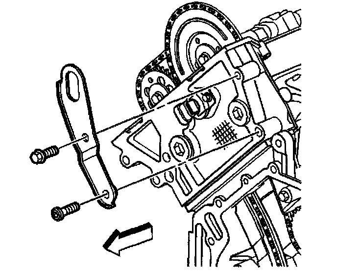 14. Remove the primary timing chain tensioner shoe retaining bolt.
