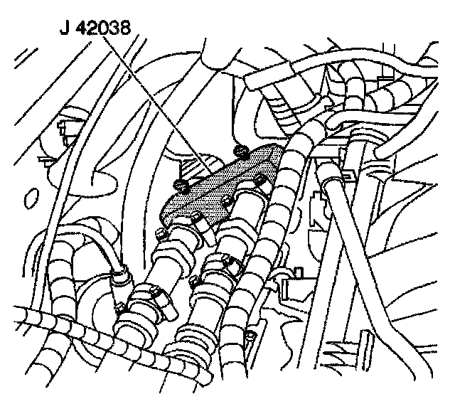1. Remove the right (rear) camshaft cover. Refer to Camshaft Cover Replacement (Front) or Camshaft Cover Replacement (Rear).