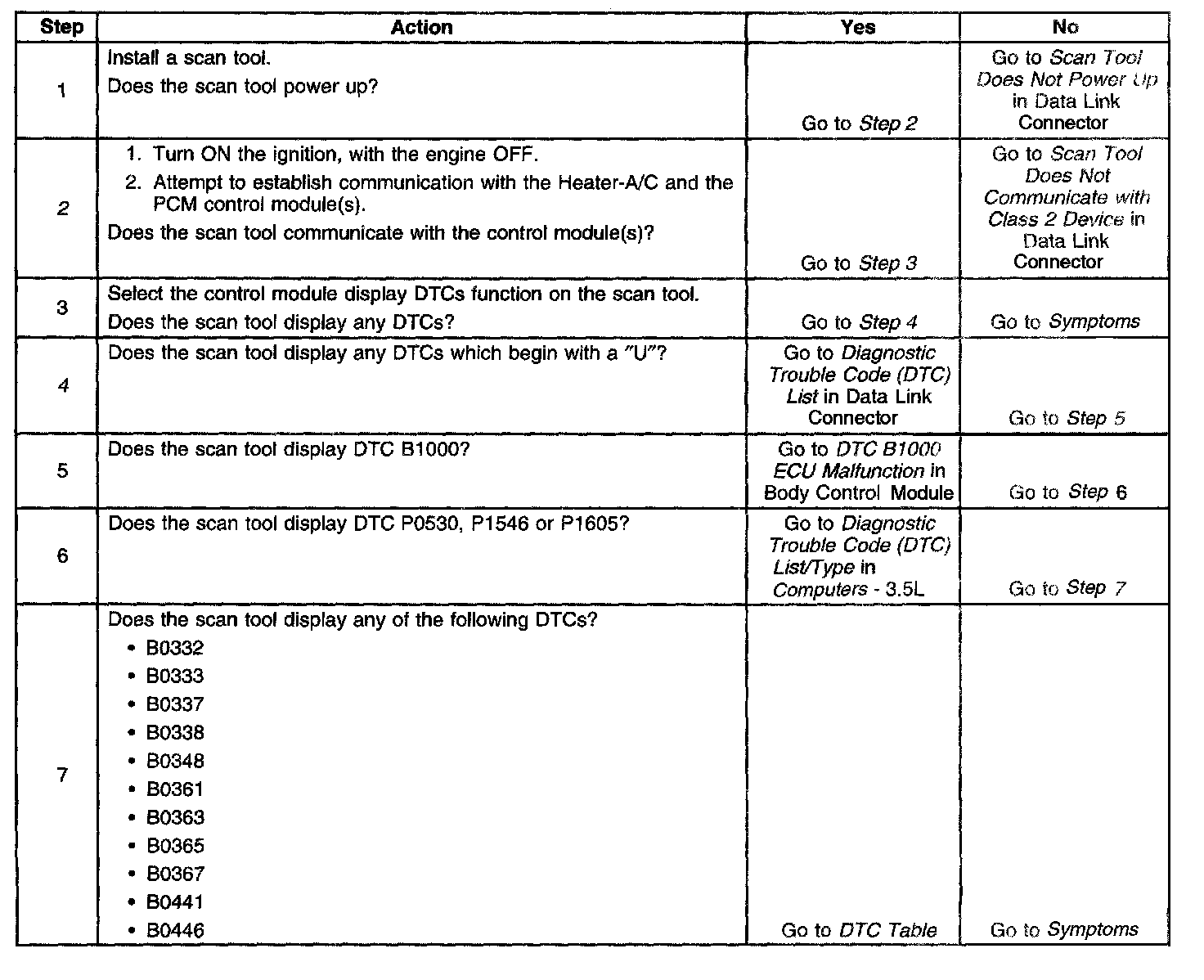 2. Lack of communication may be due to a partial or total malfunction of the class 2 serial data circuit The specified procedure will determine the particular condition.