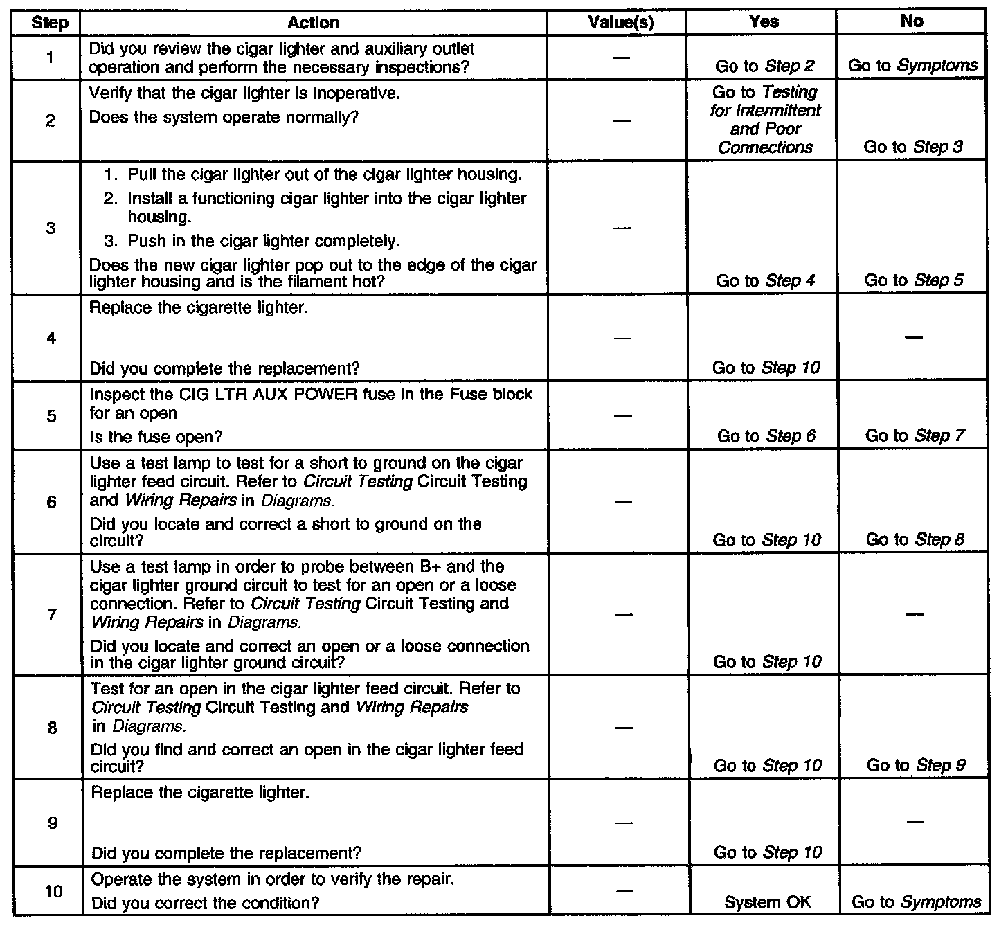 Cigar Lighter Inoperative