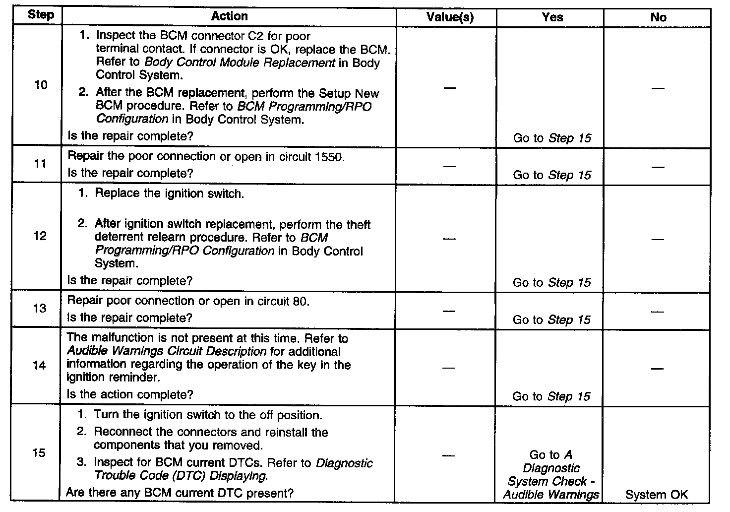 Key-In-Ignition Chime Inoperative