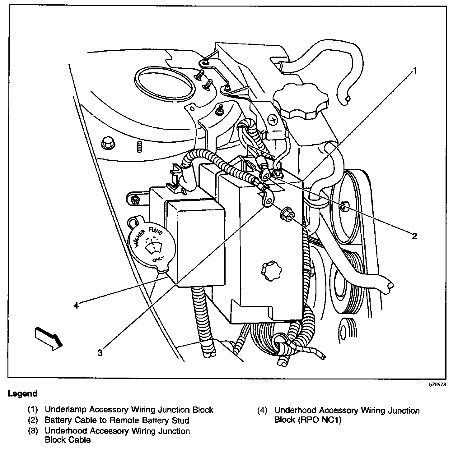 Harness Routing Views (Battery Cable Routing To Underhood Accessory Wiring Junction Block (RPO NC1)):